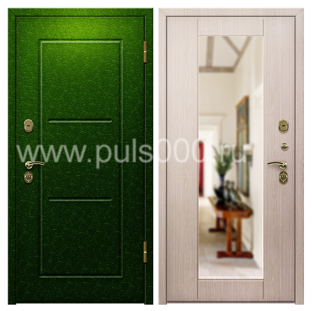 Металлическая квартирная дверь с зеркалом и шумоизоляцией PR-1119